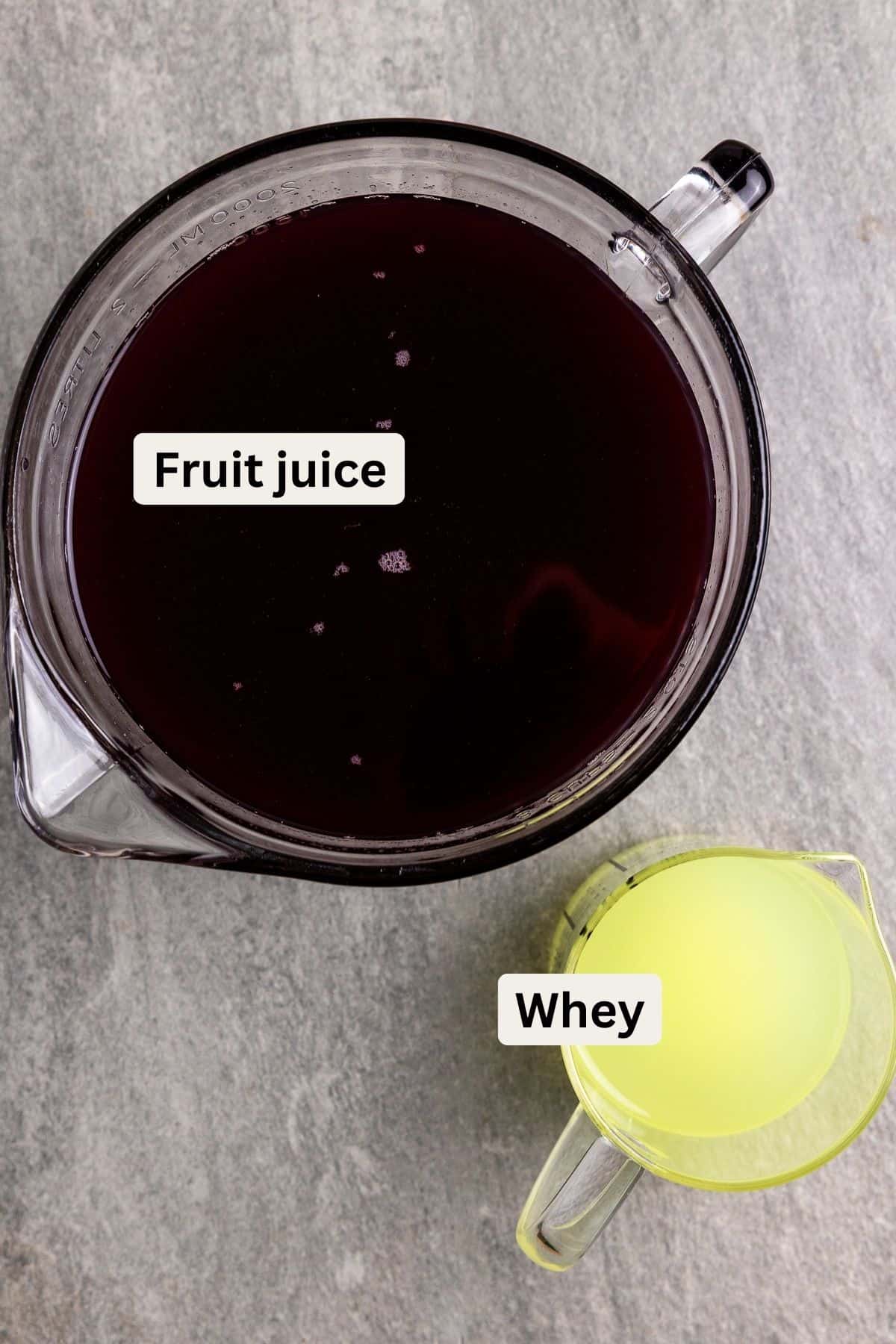 - Combine. In a gallon jar or large mixing bowl with pour spout, combine the whey and juice.